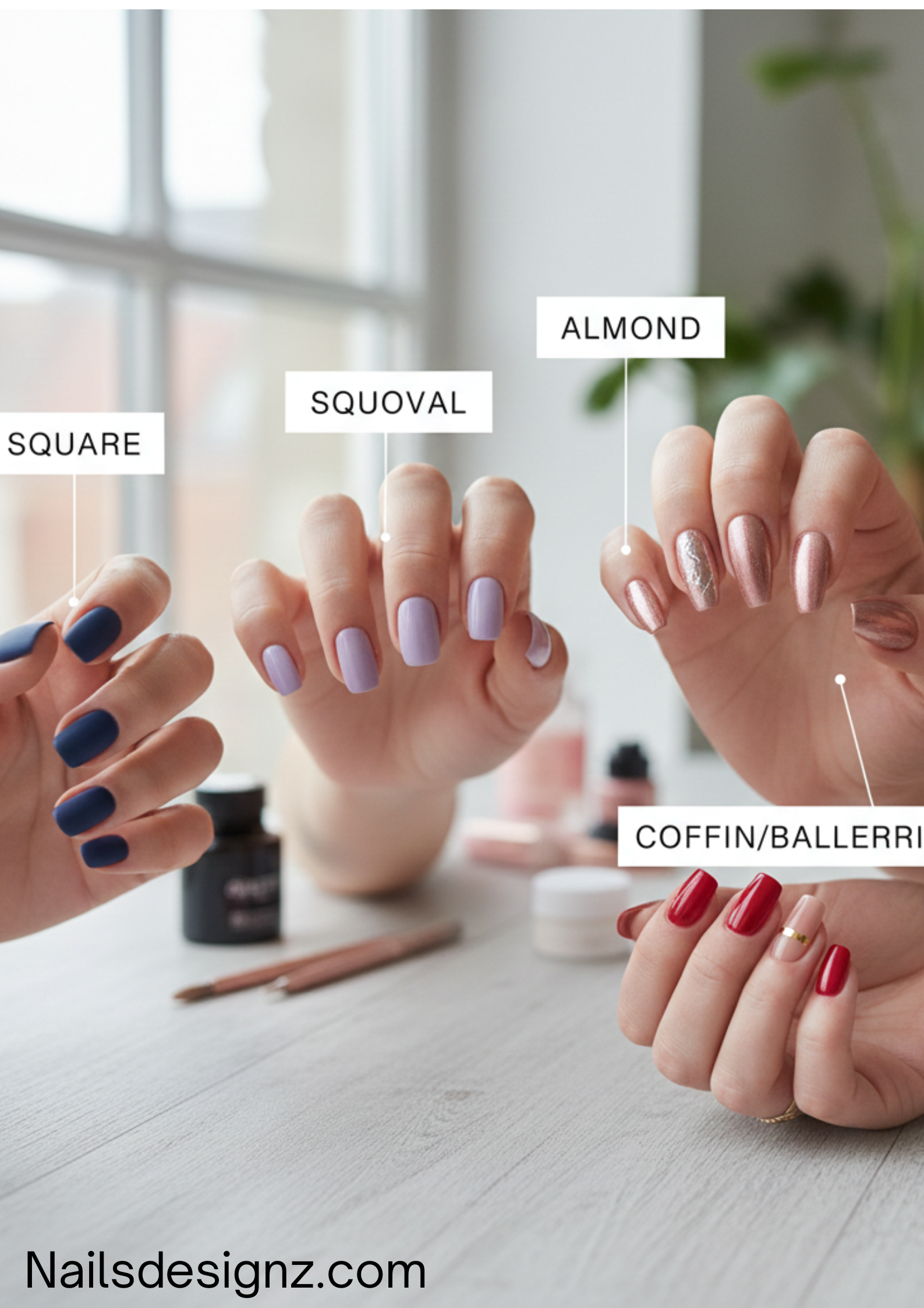 Nail shapes explained in detail. Discover which nail shape suits you best based on finger type, nail length, and lifestyle, with expert tips and FAQs.